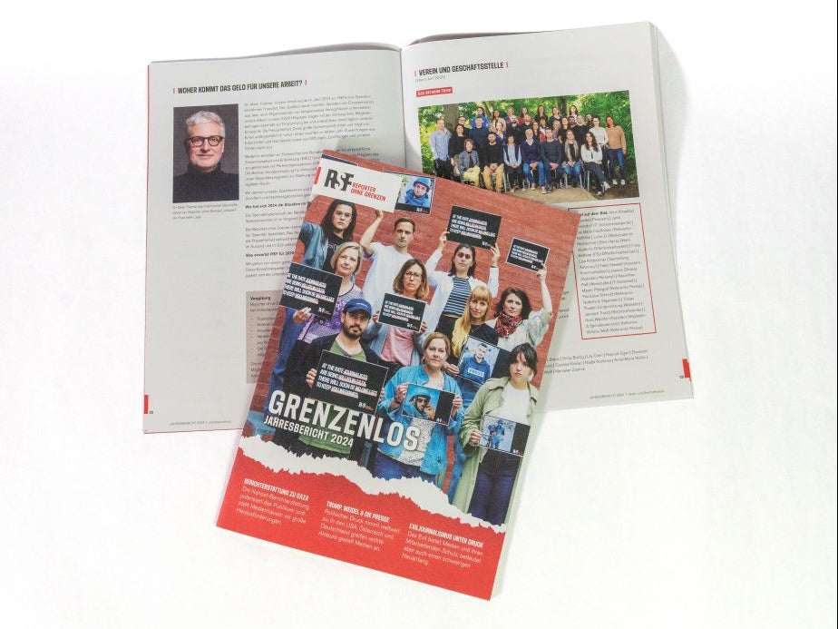 In unserem Jahresbericht 2024 informieren wir über die Aktivitäten, Projekte, Menschen und Zahlen, Daten, Fakten von Reporter ohne Grenzen.